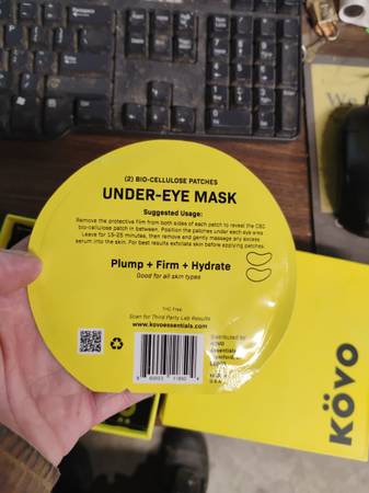 kovo essentials revitalizing eye patches help hydrate, moisturize and diminish the look of fine lines and crow's feet, see pictures for more descriptions on box cover, brand new and good dates