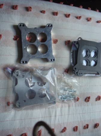 I have a brand new set of Holly 4 barrel high rise adapters which include two adapters all necessary gaskets and adapter pins $75 for all listed in the photos