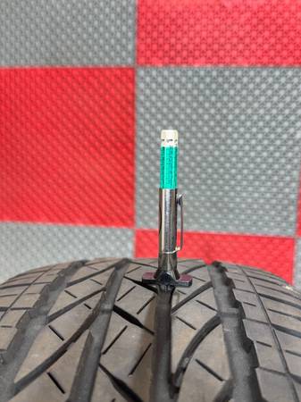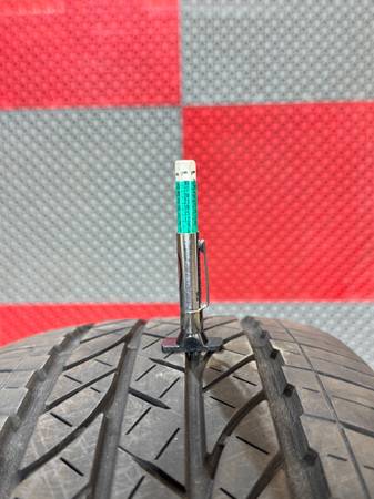 - Tread measures around 6/32 on one tire and 7/32 on the other.